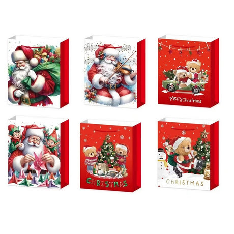 Set 6 Pungi Cadou, Model de Craciun, din Hartie, 18.5x22.5x8.5 cm